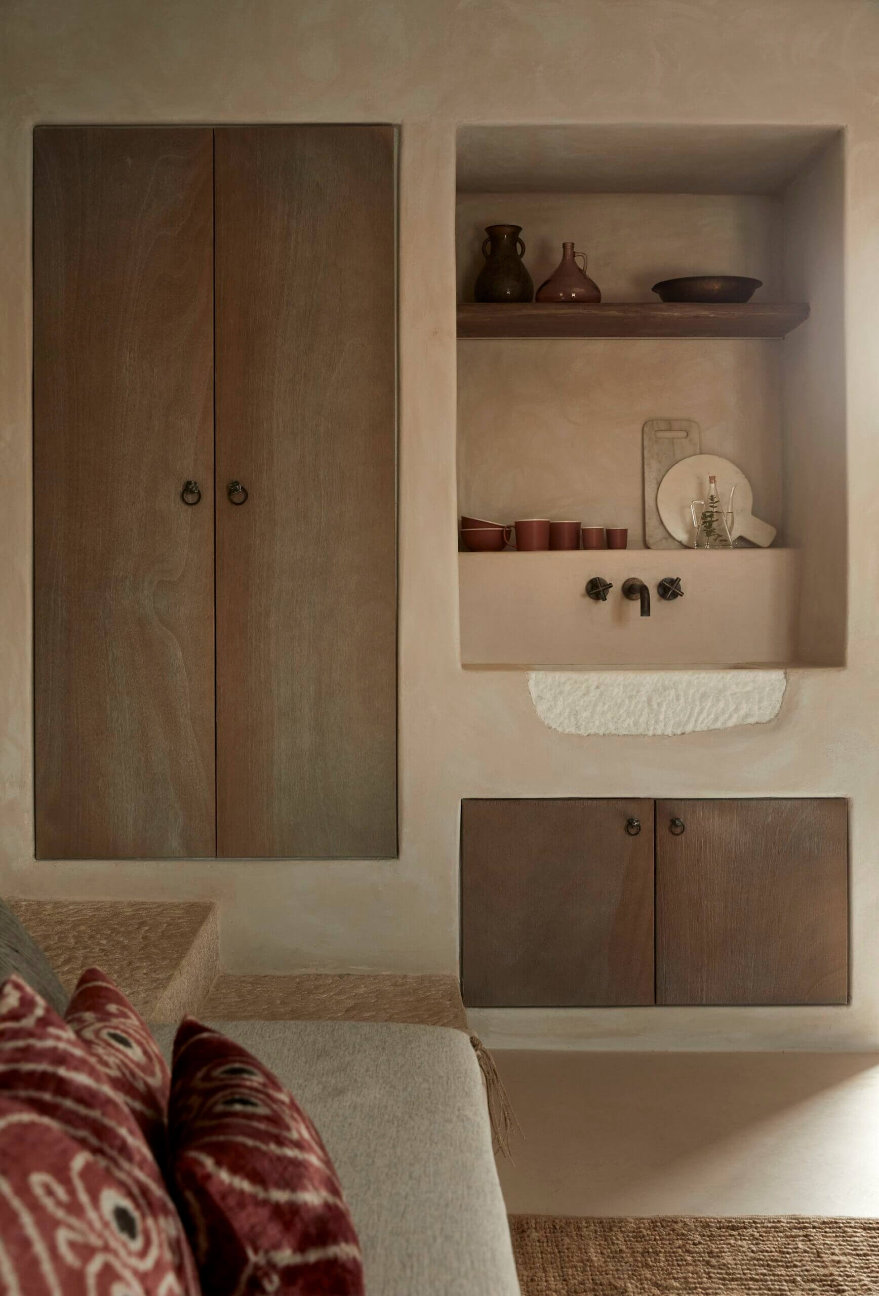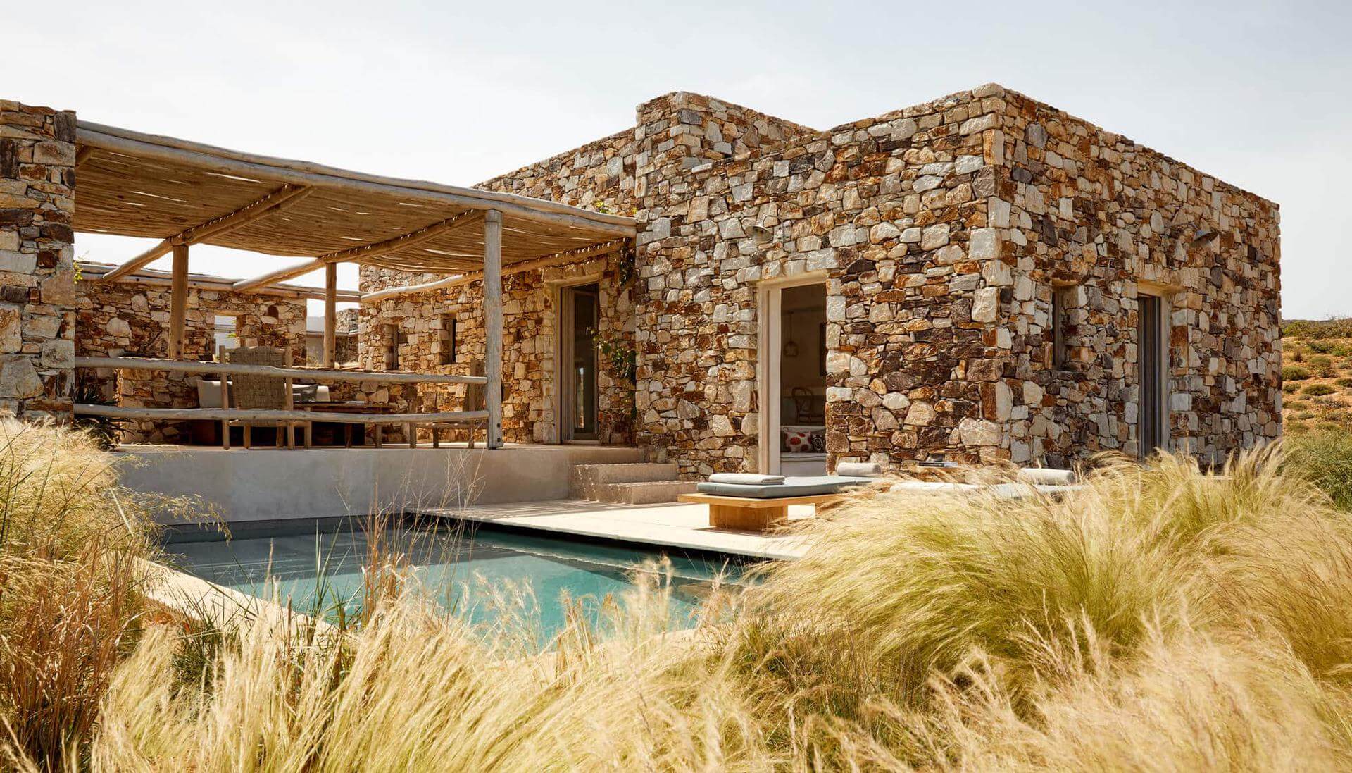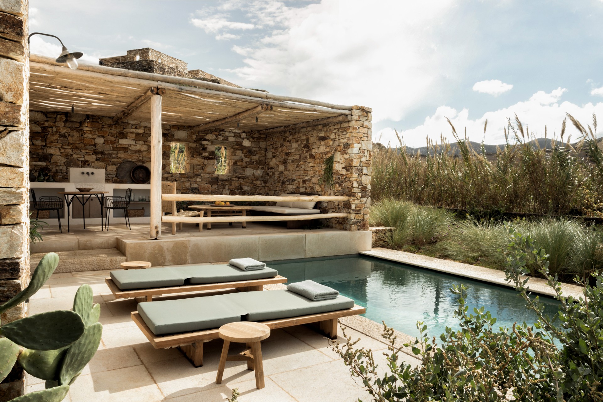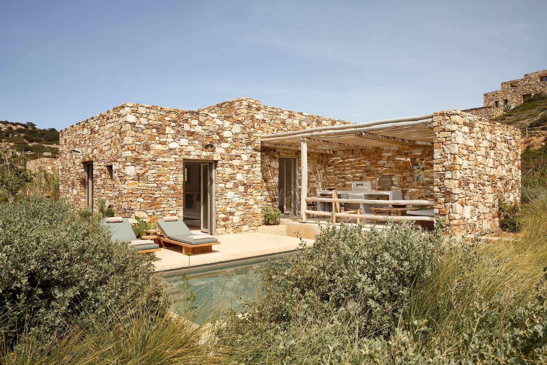 Nestled discreetly within a landscape awash in lavender and thyme, these houses blend seamlessly with the natural surroundings, offering a serene dialogue between earth and sky. The architecture invites openness, with spacious indoor and outdoor living areas, a private pool, and both indoor and outdoor showers. Every detail has been carefully crafted—custom-made beds, marble sinks, and handcrafted furniture—all come together to create a warm, intimate atmosphere, where style meets comfort in perfect harmony.