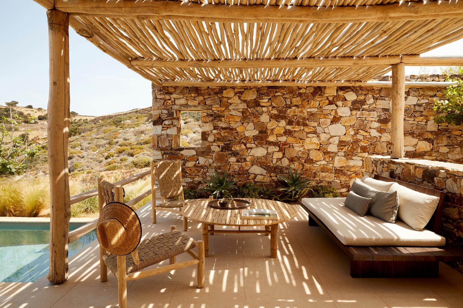 Perched on the hillside and embraced by evergreens, these homes provide a more familiar feeling of a cozy interior open space boasting airy interiors paired with the warmth of thoughtful design. Each one features indoor and outdoor showers, a secluded pool, private dining under the sky, and a gentle rhythm of living that flows effortlessly between inside and out. Tucked into the contours of the land, they frame the landscape in new ways—glimpses of sea through the trees, shifting light on stone.